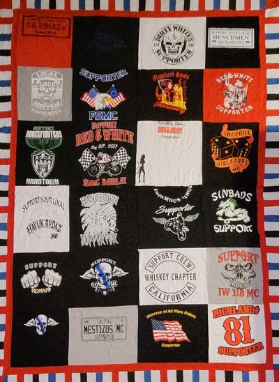 Quilt measures approximately 72W x 90L, and features support patches from MCs in the Sacramento and surrounding areas.