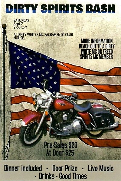 To be held at the Dirty Whites MC Sacramento clubhouse.